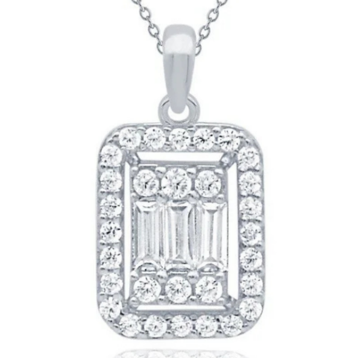 2,81gr. 14 Ayar Beyaz Altın Baget Taşlı Kolye